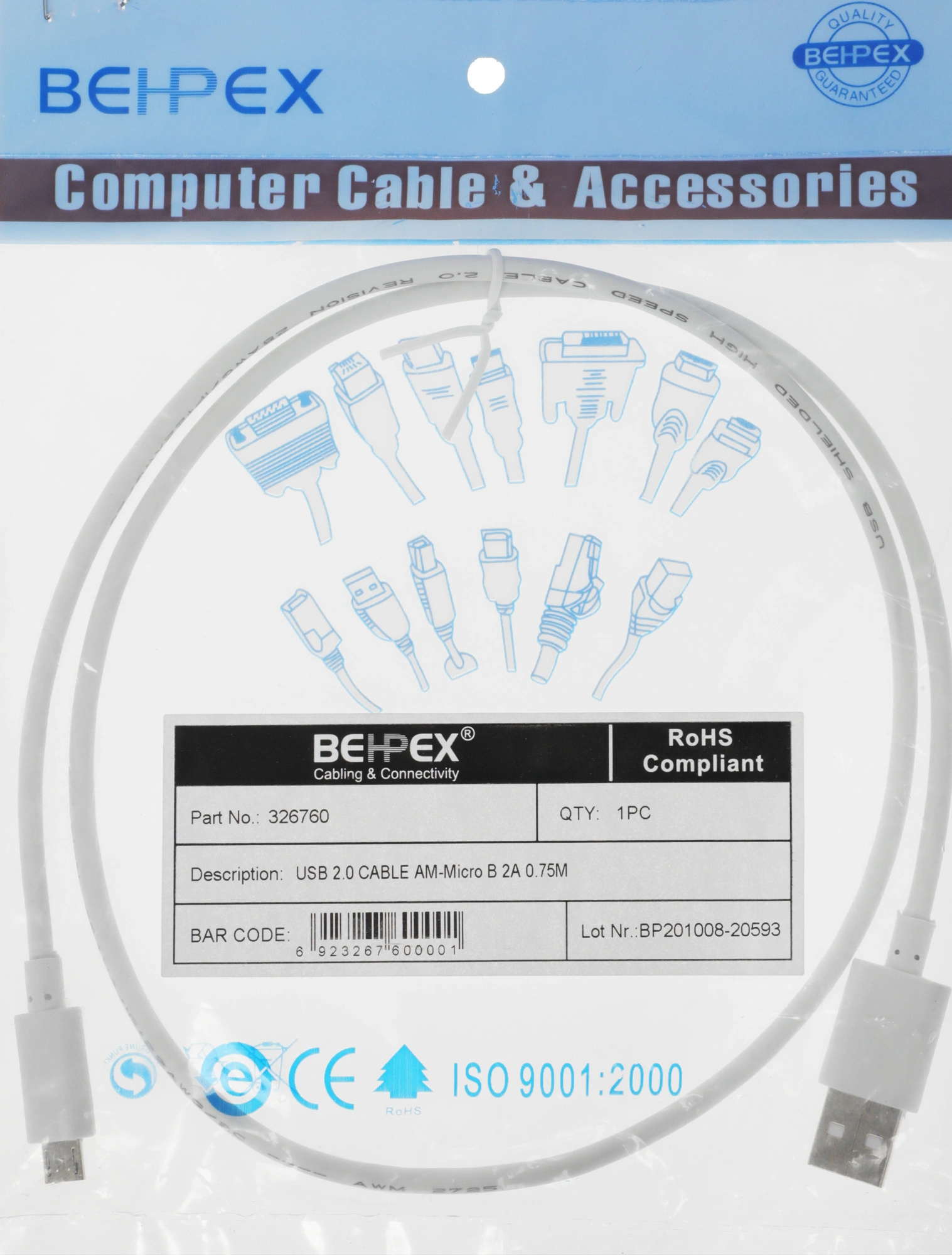 Кабель Buro BHP MICROUSB 1M FLAT USB (m)-micro USB (m) 1м черный плоский