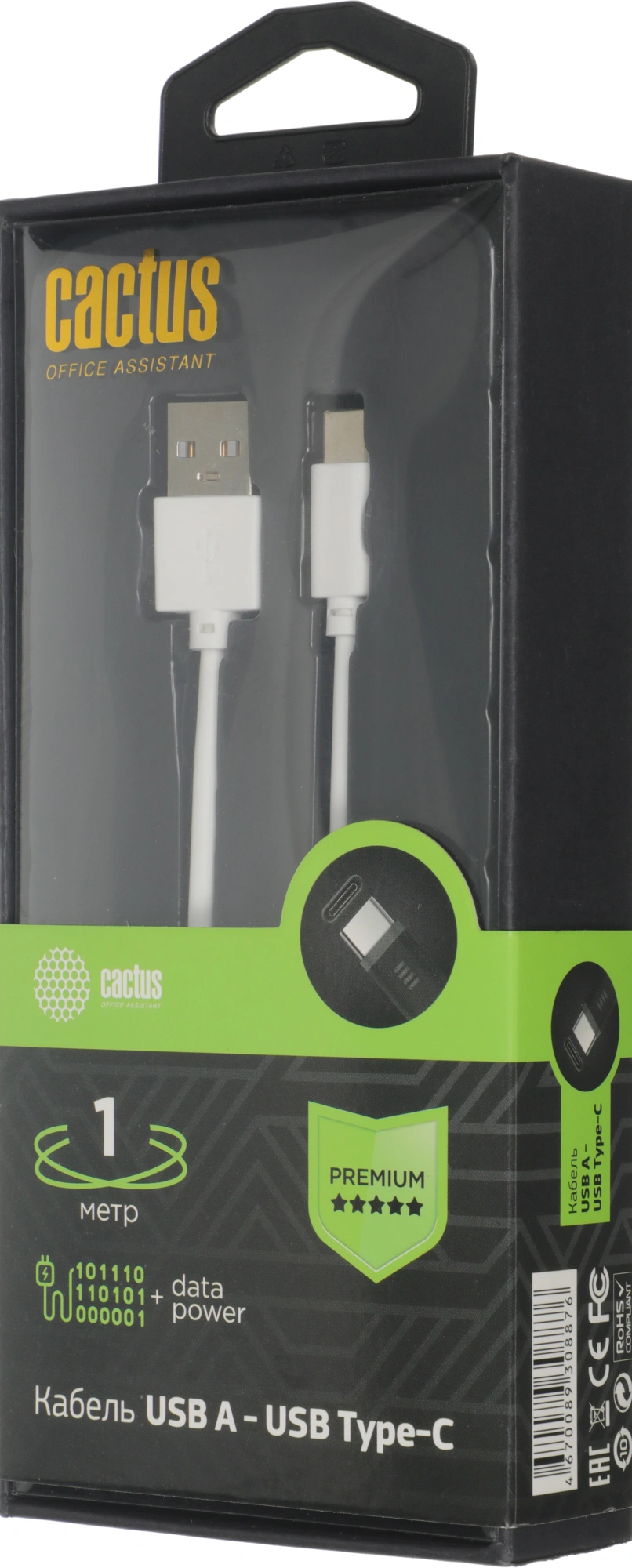 Кабель Cactus CS-USB.A.USB.C-1.8 USB (m)-USB Type-C (m) 1.8м белый блистер