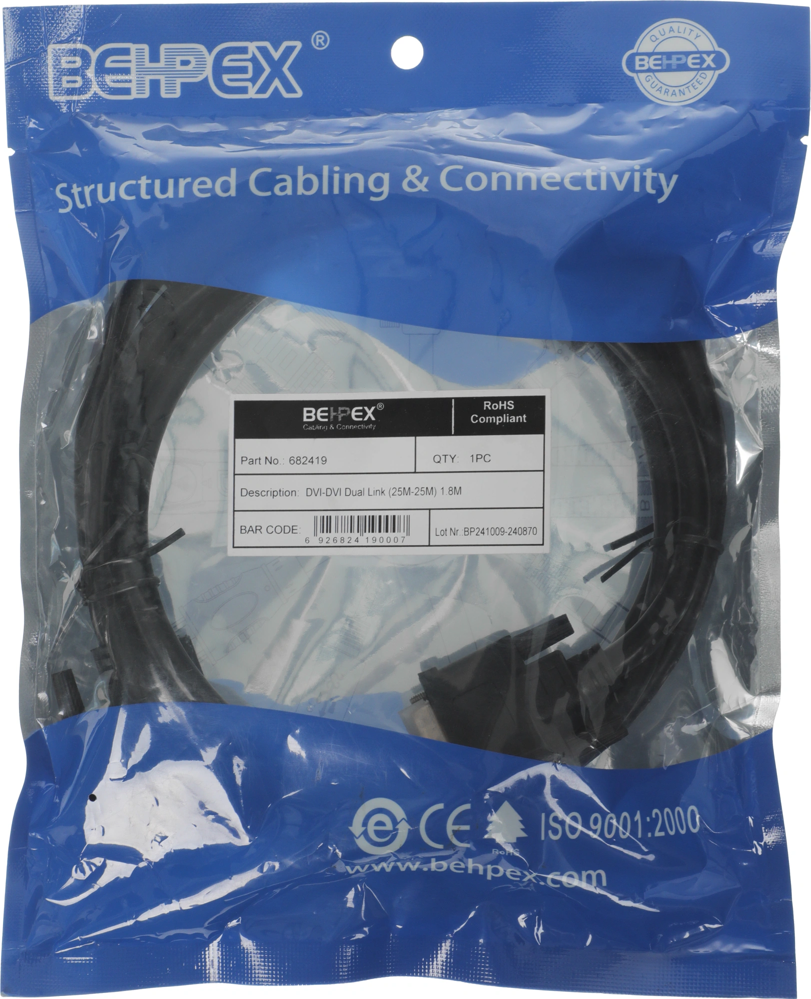 Кабель DVI-D (m) DVI-D (m) 1.8м феррит.кольца черный