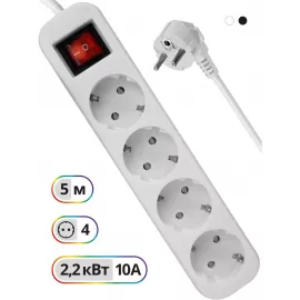 Сетевой удлинитель IEK У05В 1.5м (5 розеток) белый (пакет ПЭ)